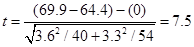 Now we just need to make a similar adjustment for the difference of two means, since it still follows a normal distribution. The t statistic for the two-sample test is given by: